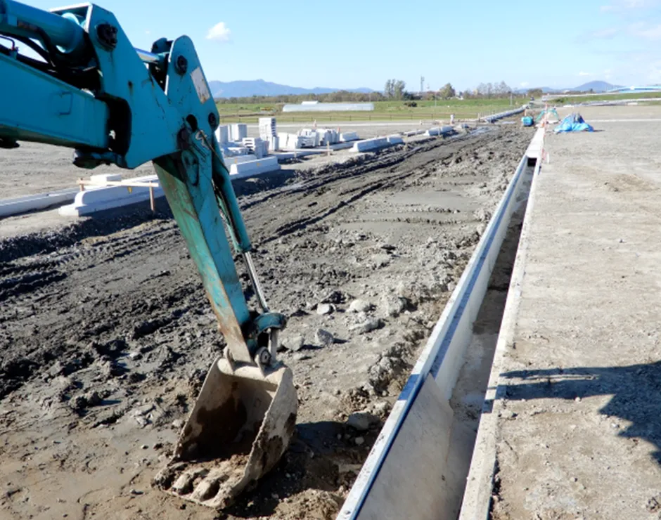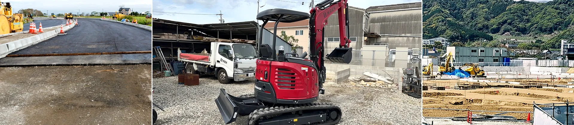 株式会社REKでは、宅地造成・ブロック工事・土間工事・道路工事・河川工事など、幅広い土木工事の分野で業務を行っています。