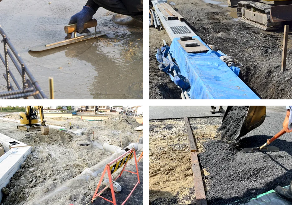 ・宅地造成 ・ブロック工事 ・土間工事 ・道路工事 ・河川工事 ・産業廃棄物収集運搬 |